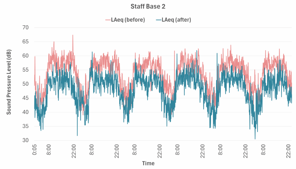 Evaluation is on the changes to overall noise levels and the impact on staff and patient experience. The qualitative exploration of reported perceptual experience after the interventions was also intended to provide a human-centred perspective on the improvements achieved, and that may not be reflected in the post-intervention quantitative data.