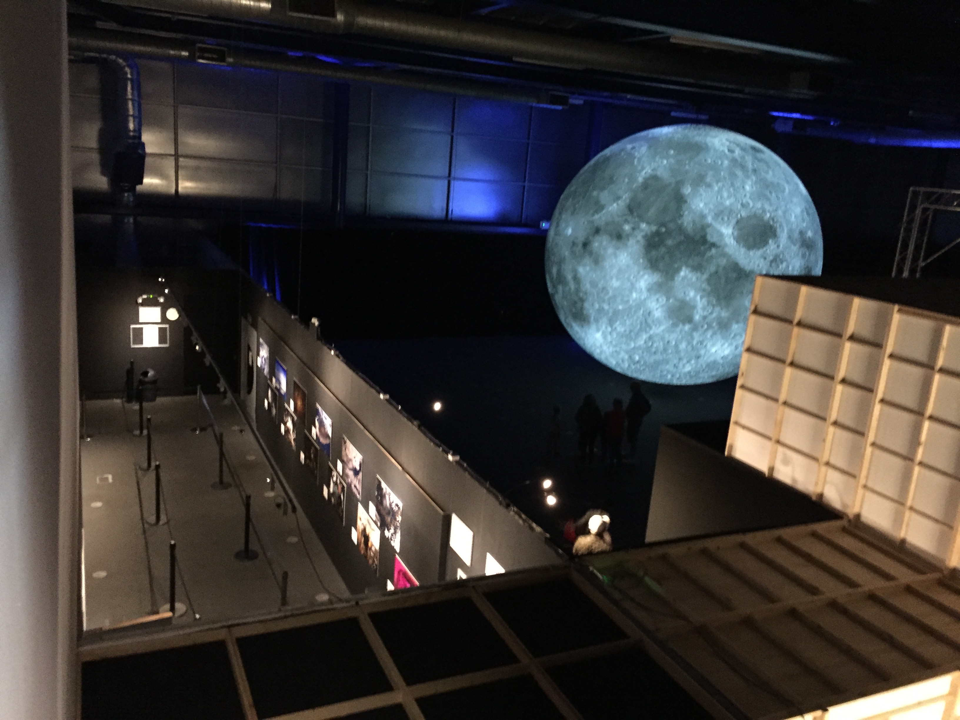 Part of Thinktank’s demise is a huge double height exhibition room. It adjoins the Planetarium, and is overlooked by a mezzanine containing Thinktank’s offices and workshops. The space has been available for hire for all sorts of events, and is used to house temporary exhibitions – like the huge balloon model of the moon in the photograph. However, Thinktank have found the space to be rather underused, and so plans are in place to develop the room to seek funding for a future permanent exhibition. As part of the preparations for that, they wanted to permanently screen off the office and workshop facilities, as they had found these areas are regularly disturbed by activities from exhibitions, and if being used more, need to minimise that.